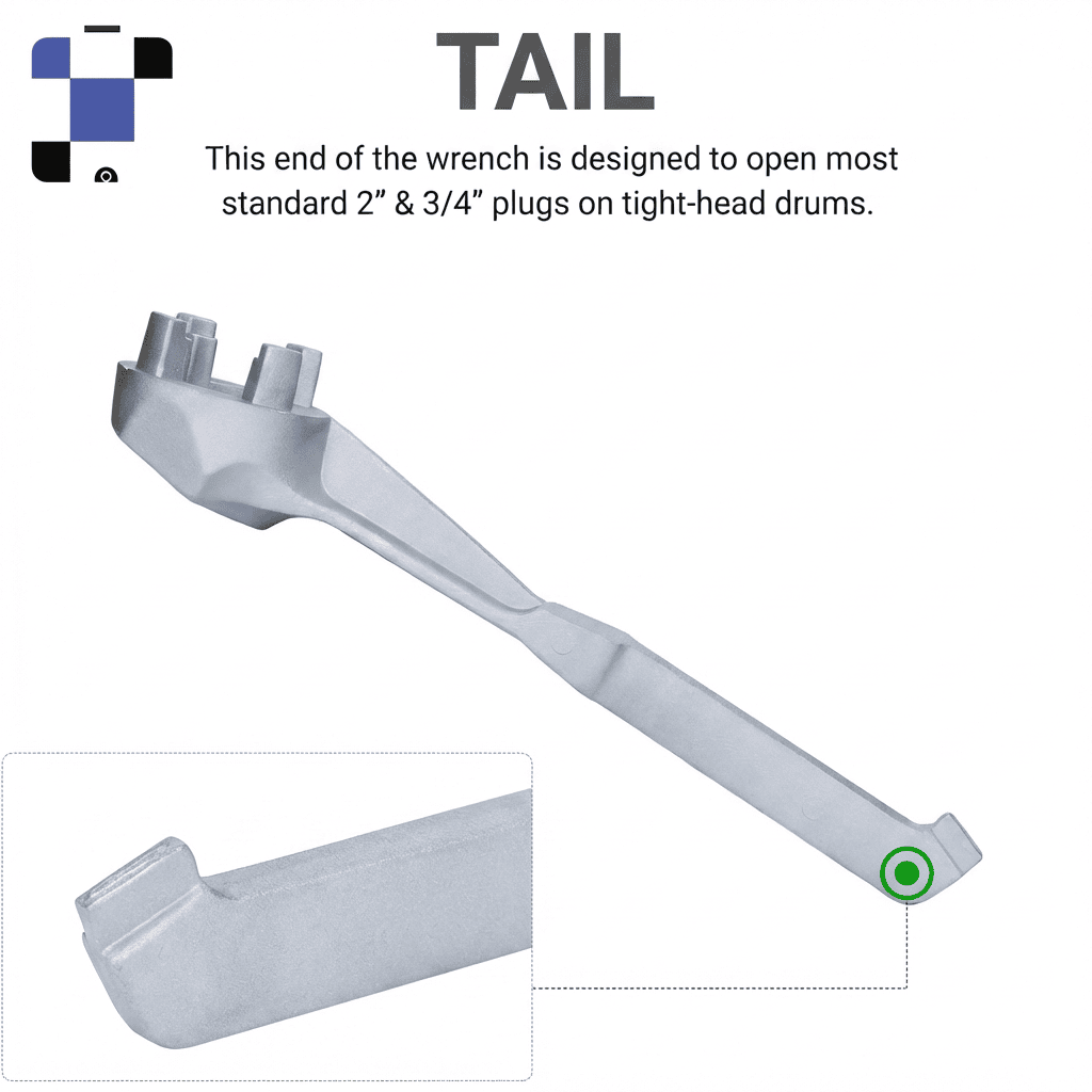 Built from cast aluminum alloy, this non-sparking bung wrench opens and seals standard drum plugs safely around flammable liquids. The extended handle delivers solid leverage on stubborn bungs, and the multi-lug head grips fittings firmly to prevent rounding. Lightweight, durable, and ready for daily industrial use.